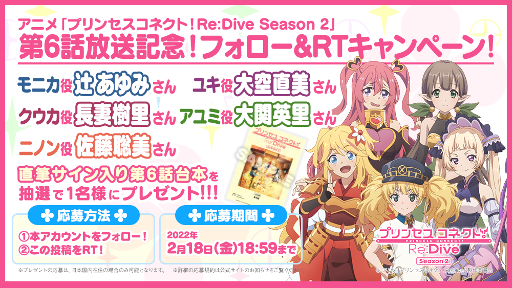— アニメ「プリンセスコネクト!Re:Dive Season 2」公式 (@priconne_anime) February 14, 2022