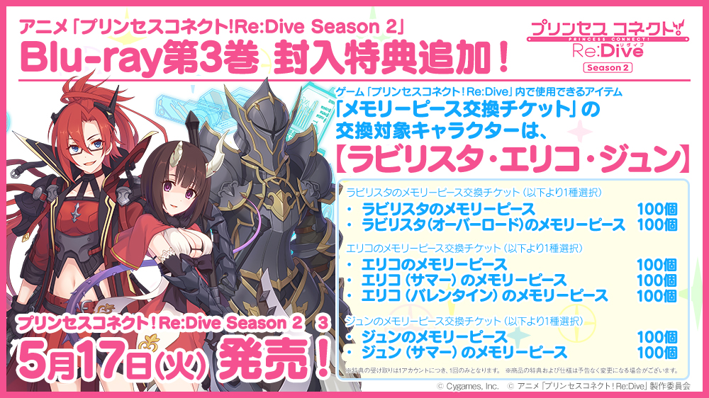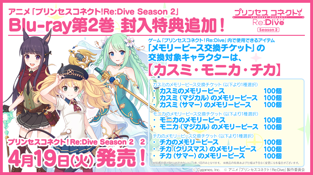 「プリンセスコネクト!Re:Dive」特典シリアルコードの「メモリーピース交換チケット」交換対象キャラクターの詳細を発表いたします。