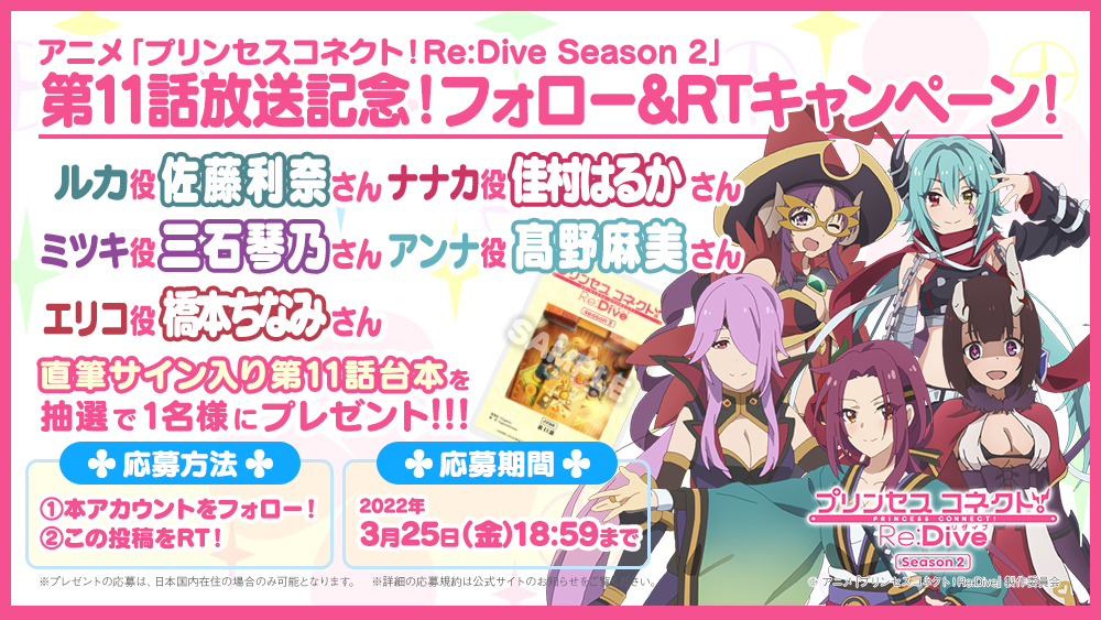 — アニメ「プリンセスコネクト!Re:Dive Season 2」公式 (@priconne_anime) March 21, 2022